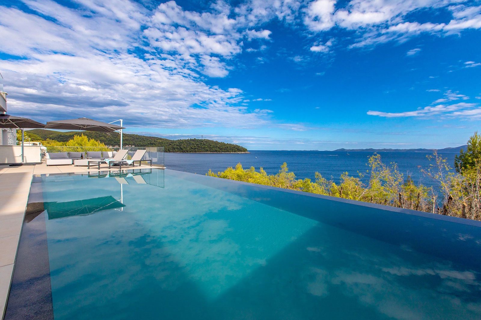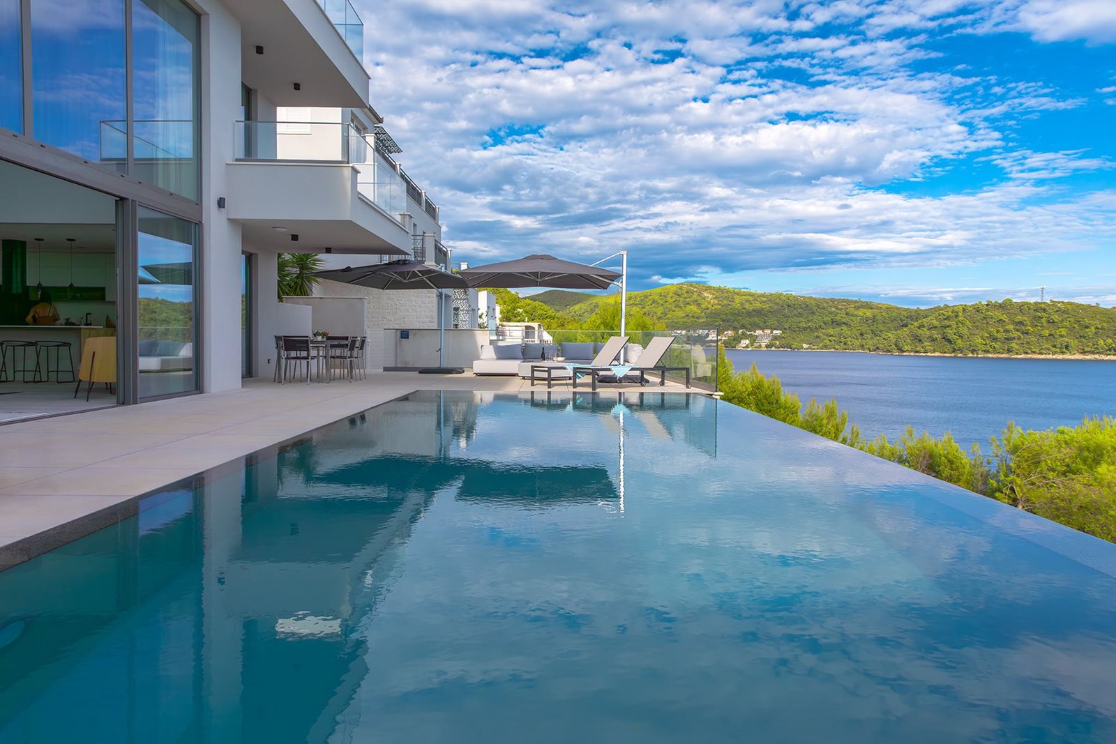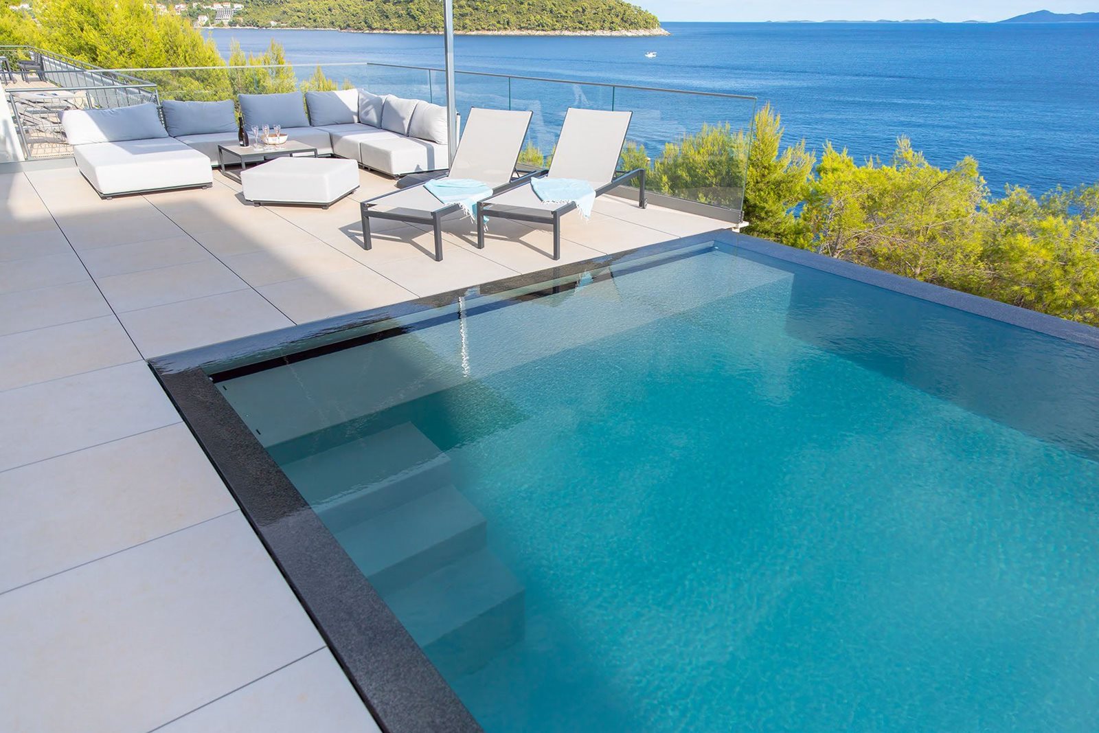 The hillside villa with large glass windows and endless sea views is an architectural gem that has become a second home for the owners' family. They wanted a place where they could spend their leisure time with family and friends, enjoy a holiday and feel as comfortable as if they were at home. The NIVEKO pool, which has become the natural centrepiece of the entire villa, adds the finishing touch to the exclusive and luxurious atmosphere.